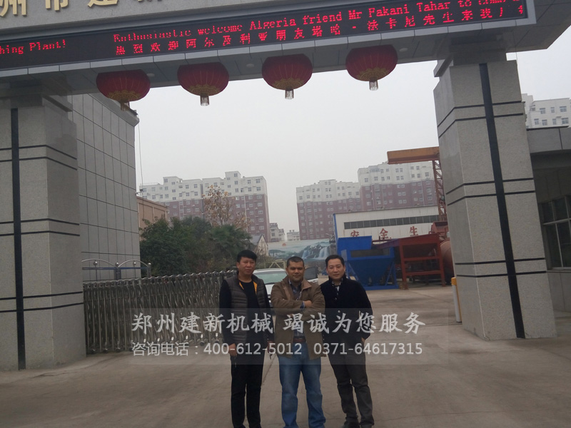阿尔及利亚位于非洲北部,作为非洲面积最大的,在发展建设中对于建筑机械的需求是比不可少的,正式基于这种认识,建新机械靠专门组建的外贸团队成功进入阿尔及利亚市场,而近日又有一位来自阿尔及利亚的客户朋友来到建新机械厂区考察,在经过一番参观与洽谈之后,顺利签下合同,预定两套HZS25混凝土搅拌站。